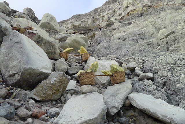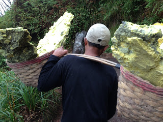 No pueden existir muchos trabajos más duros que el de los mineros del azufre del Ijen. En vez de quejarse por tener que esquivarnos,