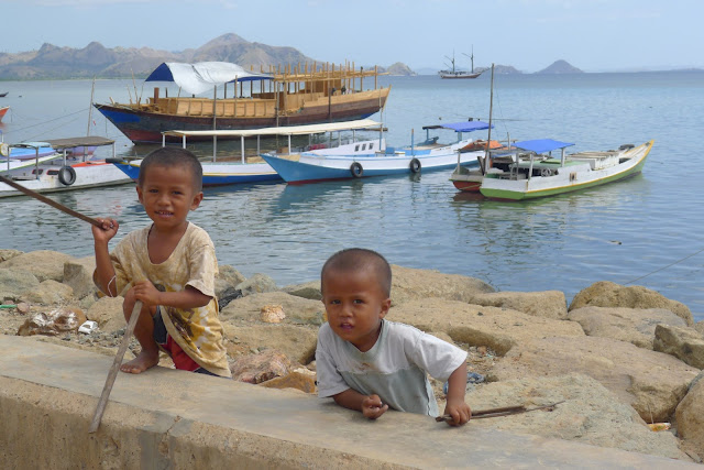 El paseo marítimo de Labuan Bajo, próximo al puerto, está actualmente (agosto 2013) en construcción. Paseamos por él observando las actividades de los locales y sus barcos. Al otro lado del puerto hay un mercado bastante cutre, que visitamos una tarde, donde venden pescado no muy fresco y frutas y verduras, en su mayoría, traídas de Lombok.