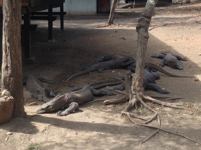 En Rinca es fácil ver dragones cerca de las cocinas de la zona de entrada al Parque, atraídos por los olores. Además de en ese lugar, vimos otro de gran