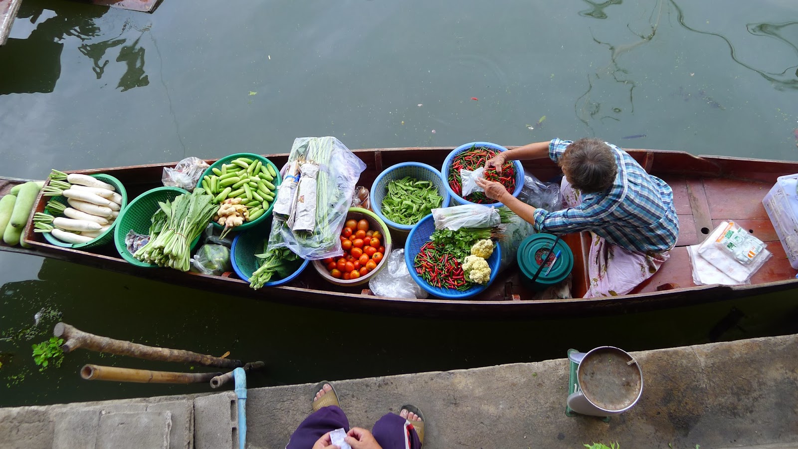 por los canales hasta el mercado muy temprano para hacer la compra.