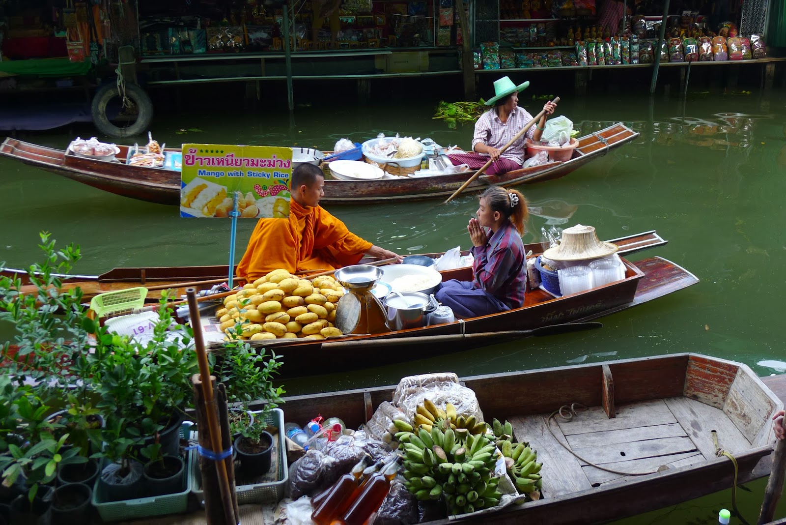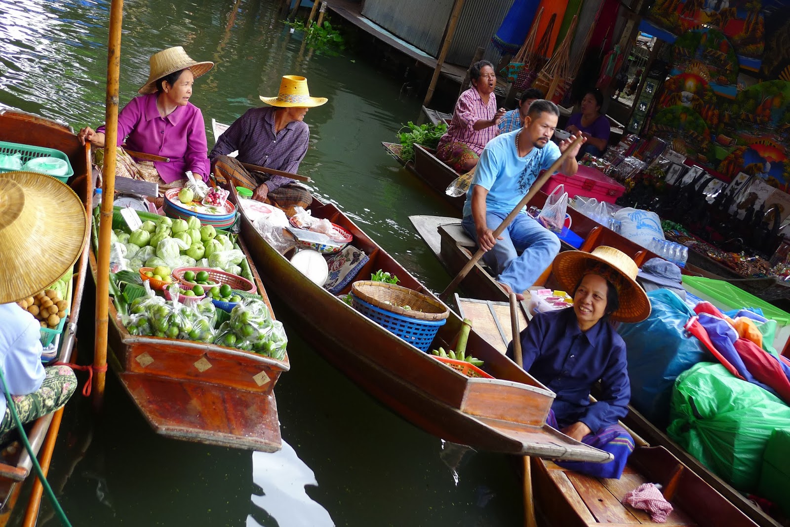 suben en otra barca y los pasean de un puesto de souvenirs a otro.