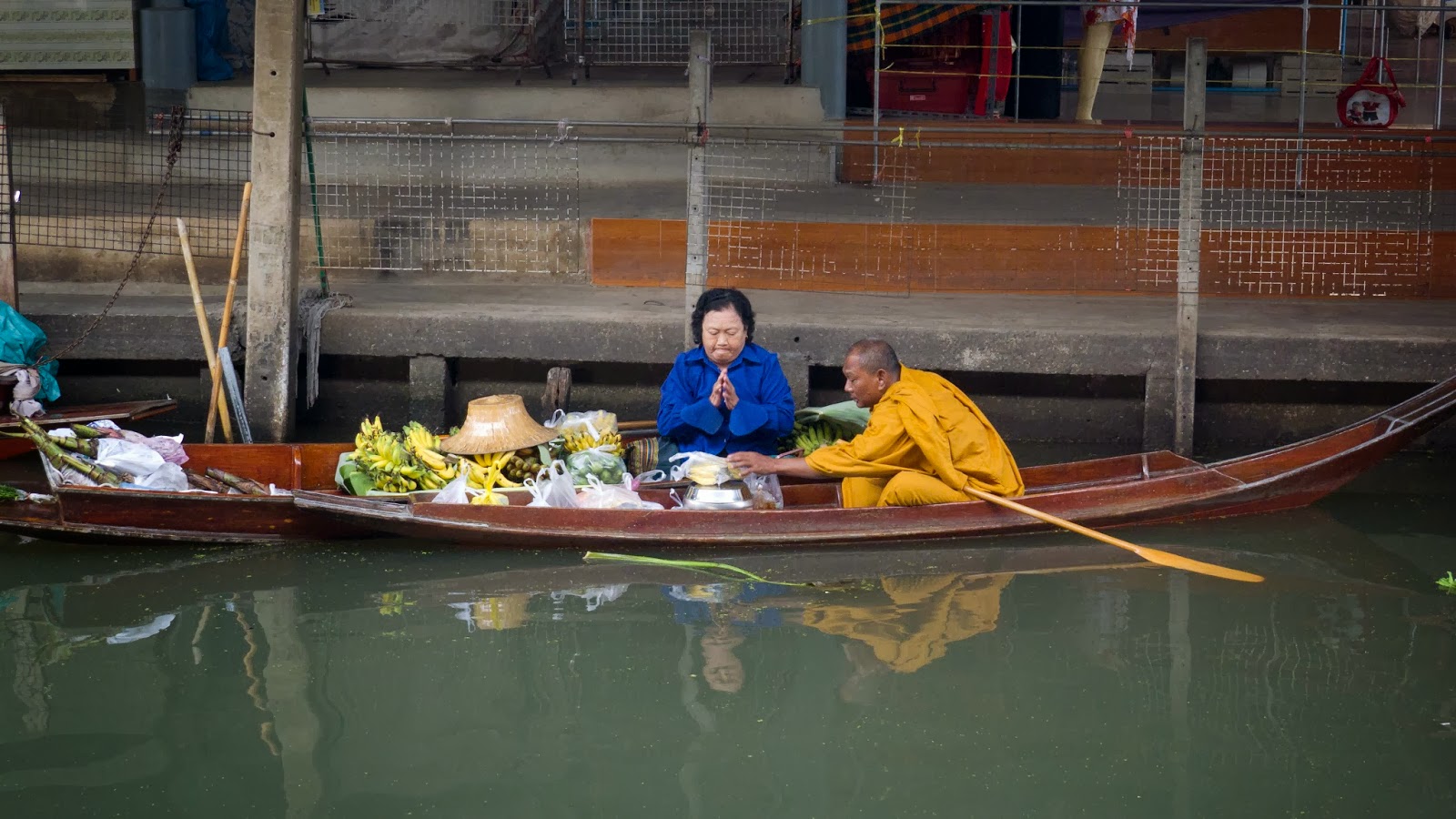 Eso para nada es el mercado flotante que queríamos ver. Para evitarlo, debíamos madrugar y adelantarnos a las masas de turistas. Nos desplazamos el día antes y pasamos una noche en Damnoen Saduak.