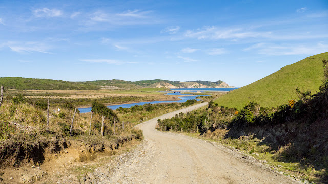 Llegar hasta el Muelle de las Almas sin coche no es tarea sencilla, pero la recompensa fue inmediata al ver este paisaje que nos recordó a los acantilados de Isla de Pascua o de Nueva Zelanda. Además, cuando caminábamos hacia allí, por el sendero ya disfrutábamos de buenas vistas en una zona muy poco poblada, cuidada y sin apenas visitantes. Nos hubiera gustado que toda la isla de Chiloé estuviera menos talada, menos construida y se pareciera más a esta zona tan bonita.